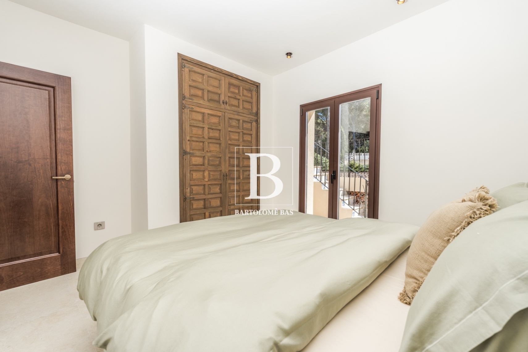 Outside, the landscaped garden offers multiple ambiences, from sunny lounging areas to shaded chillout spaces, along with a southfacing 9×5 m saltwater pool. A rooftop terrace with views of the Montgó completes the property.