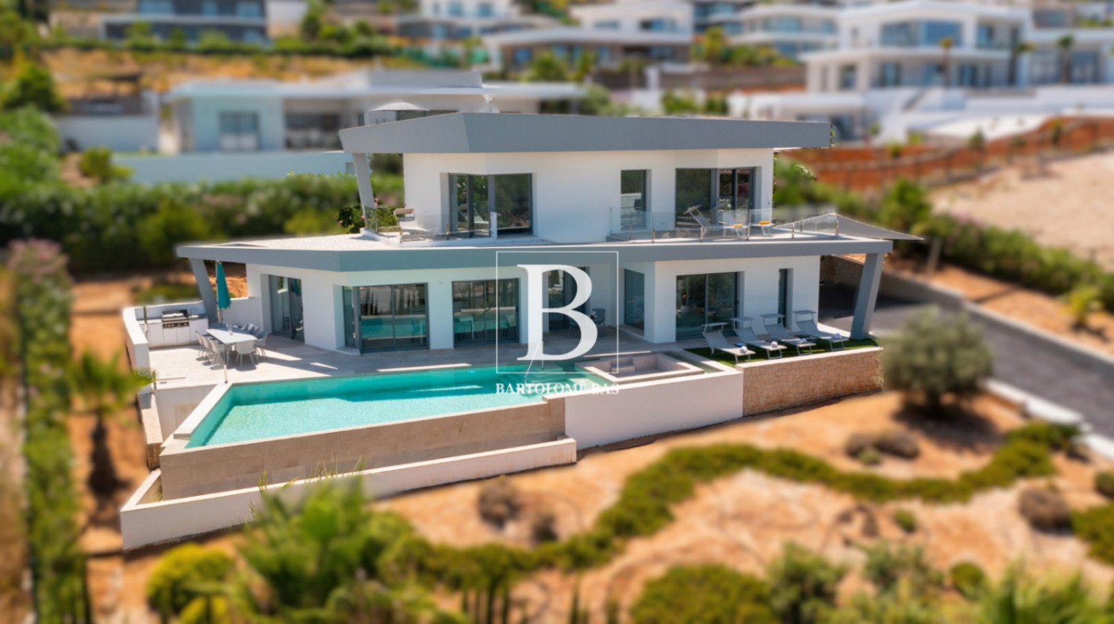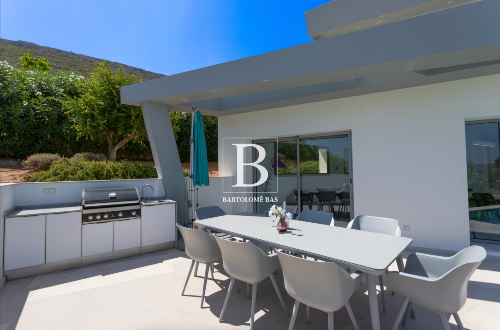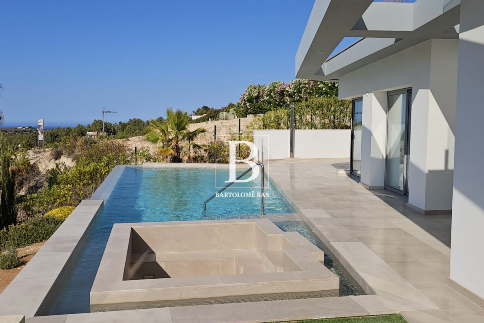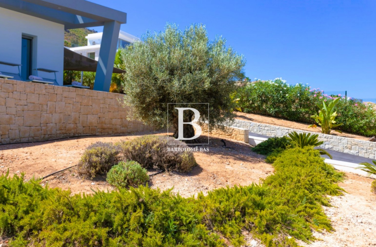 Set on a generous plot in the residential area of Monte Olimpo in Jávea, this modern villa offers an atmosphere that is both intimate and open to the horizon. The sea shimmers in the distance, the Montgó traces its protective silhouette, and the villa blends naturally into this privileged setting.