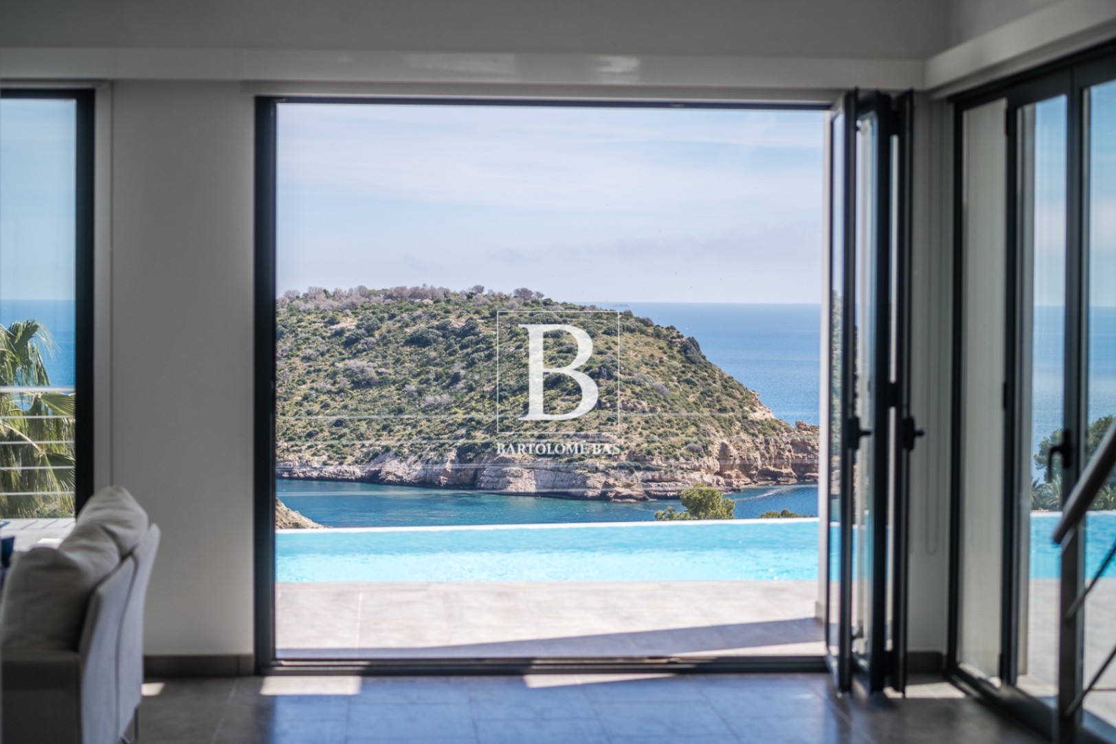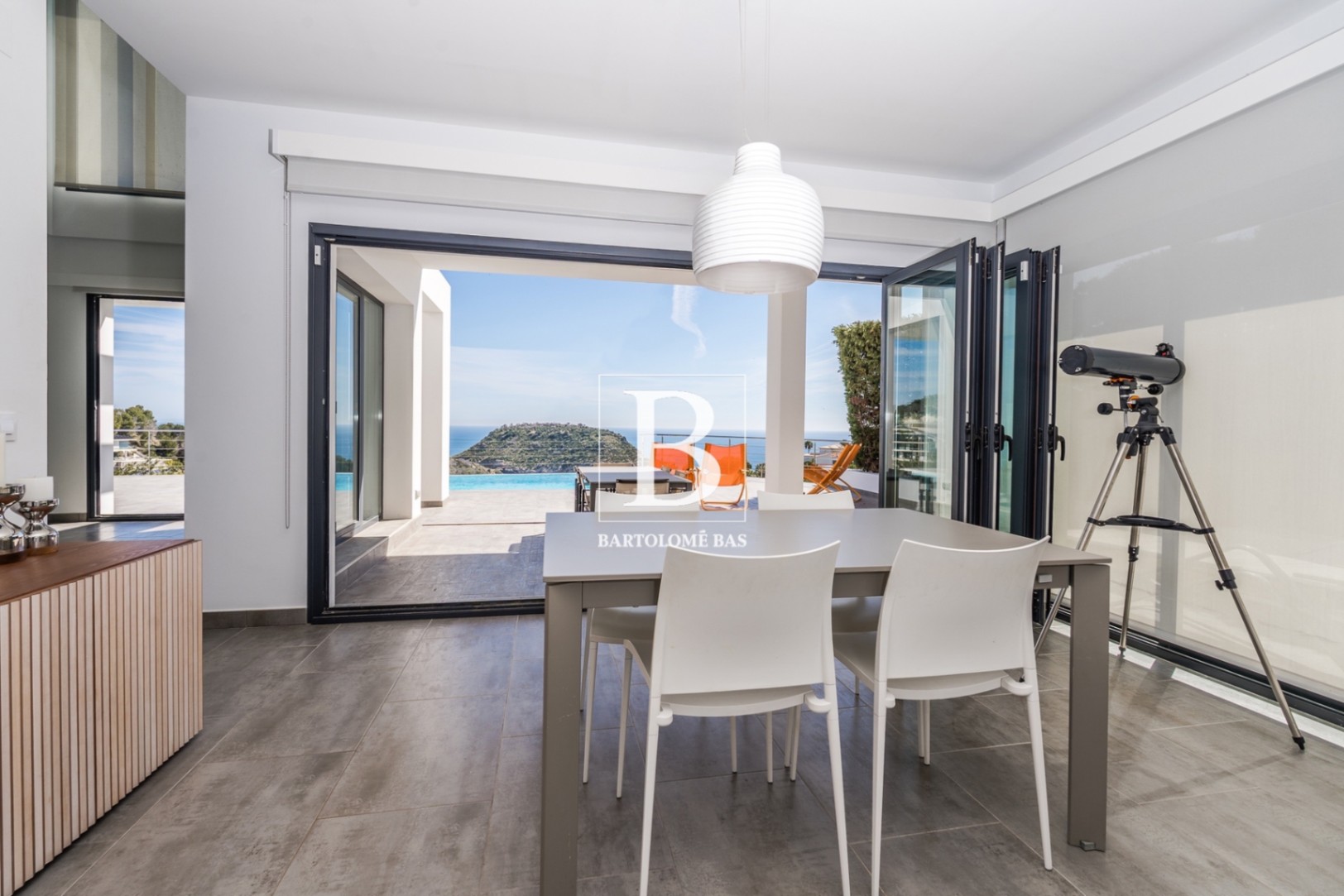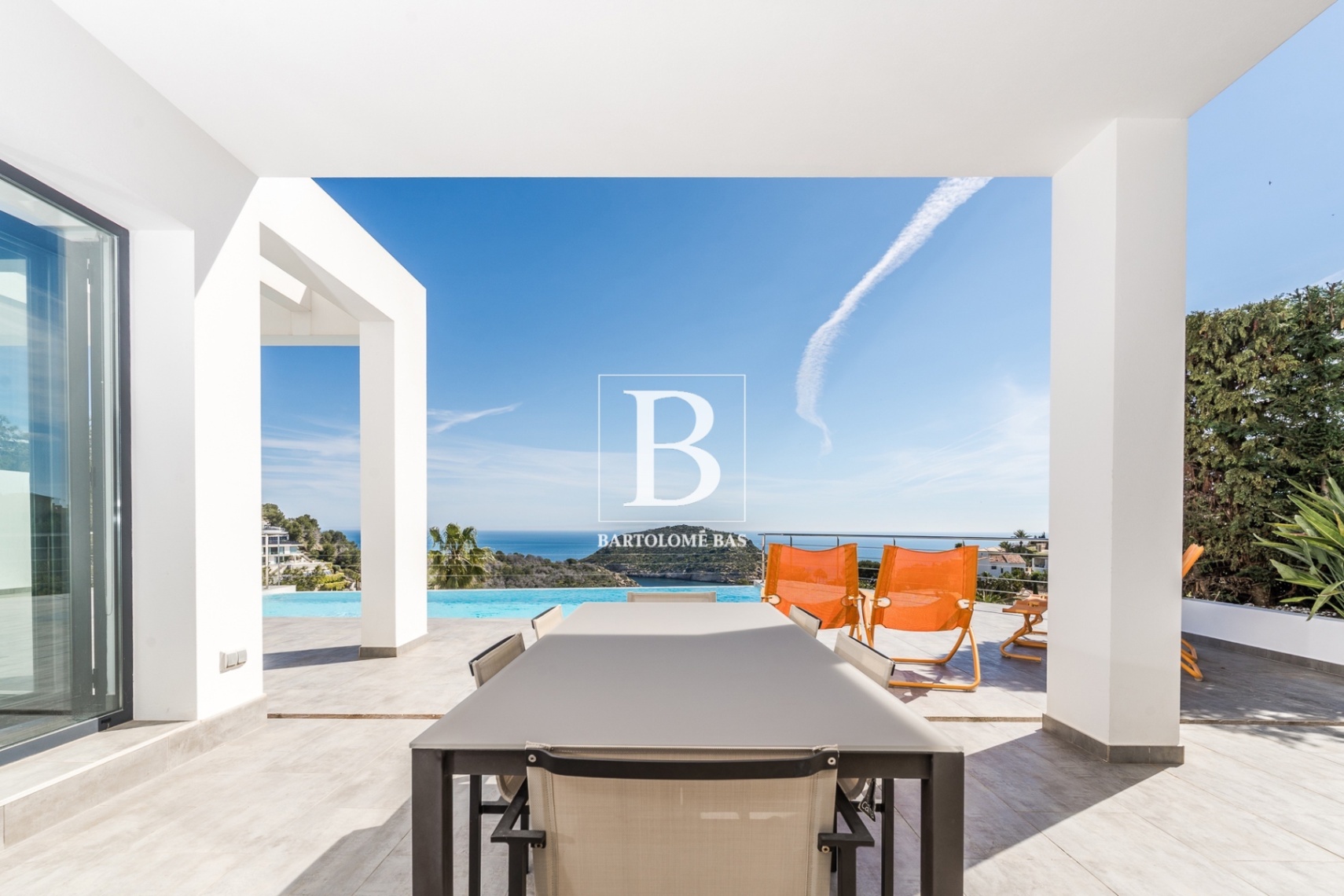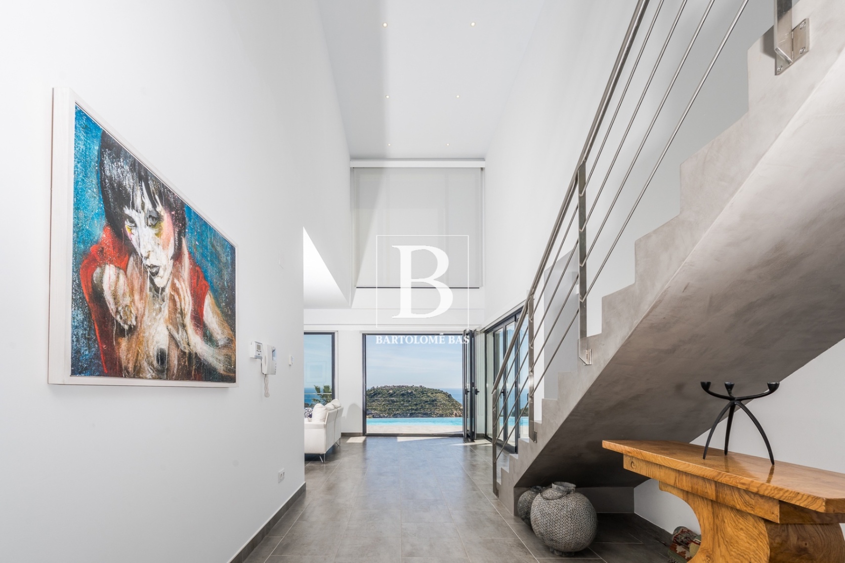 Cette propriété présente une architecture contemporaine avec de grandes baies vitrées qui offrent une luminosité naturelle toute l’année et incarnent parfaitement le luxe méditerranéen, avec une vue spectaculaire et totalement dégagée sur la mer et l’île de Portichol.