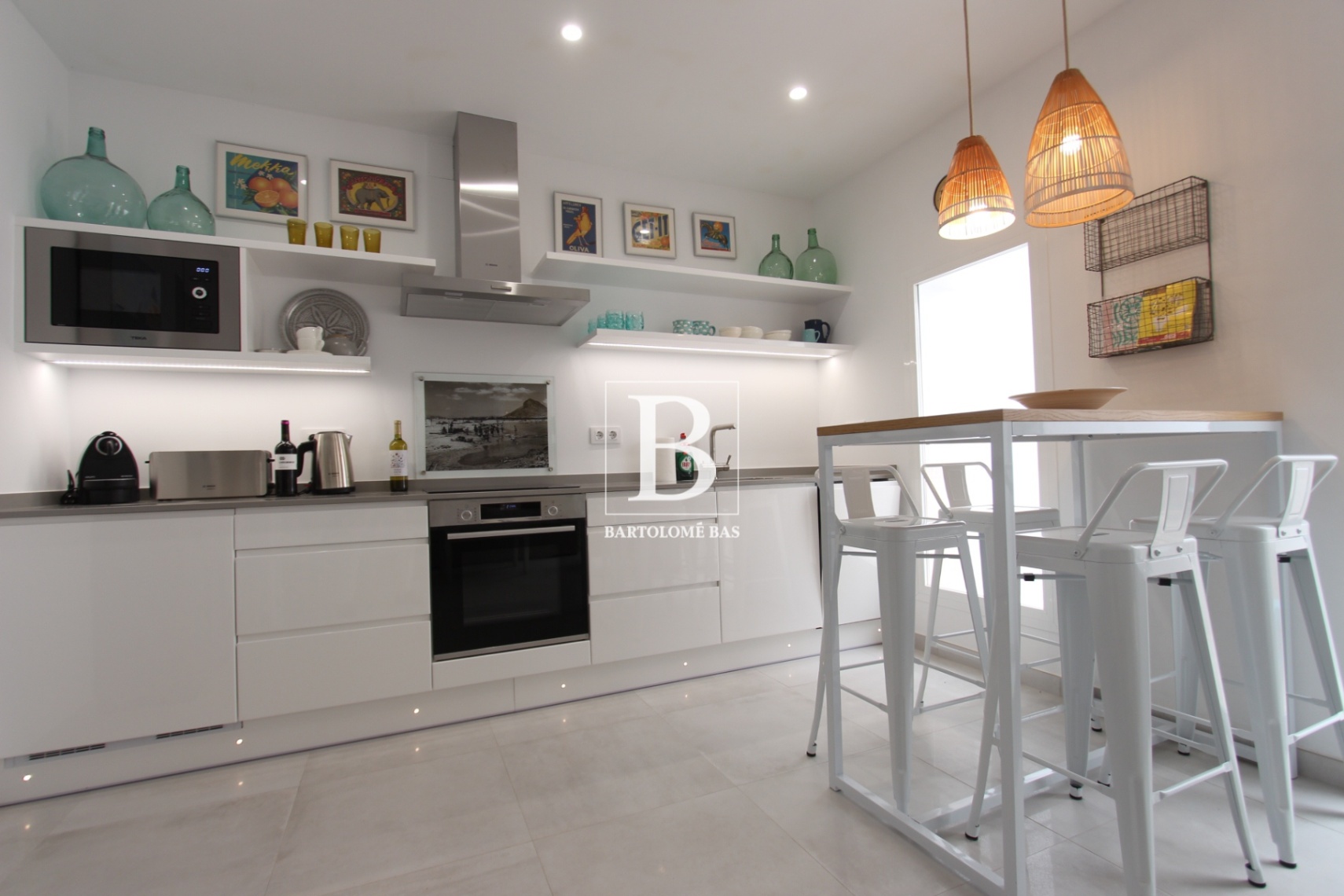 La vivienda se distribuye cómodamente en una sola planta y destaca por su funcionalidad y luminosidad. Dispone de un salóncomedor con cocina moderna abierta, totalmente equipada, creando un espacio acogedor y práctico para el día a día. Desde el salón se accede a un encantador patio interior con preciosa piedra tosca, que aporta carácter y autenticidad, e integra una zona de lavadero discretamente oculta en armarios.