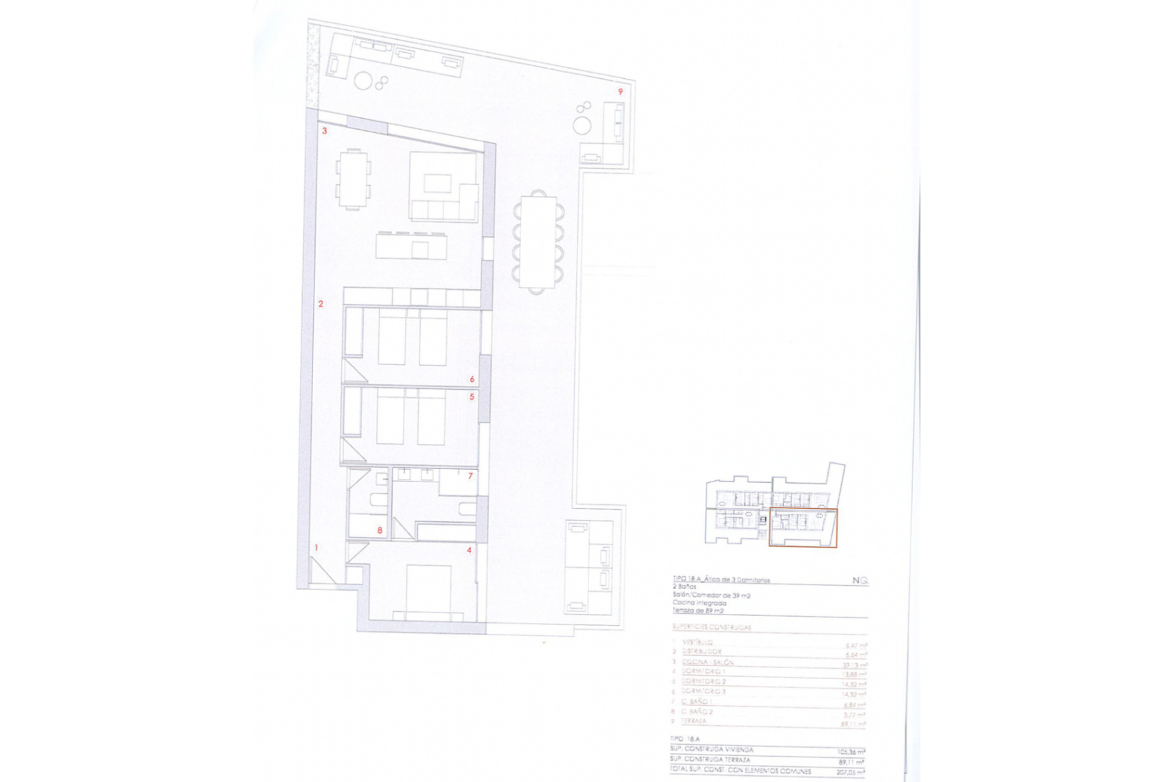 El gran valor añadido de este ático es su terraza de 83 m², perfecta para crear diferentes ambientes: zona de comedor, espacio chillout, solárium o área de descanso. Un entorno ideal para disfrutar del aire libre, la tranquilidad y la posición elevada dentro del complejo.