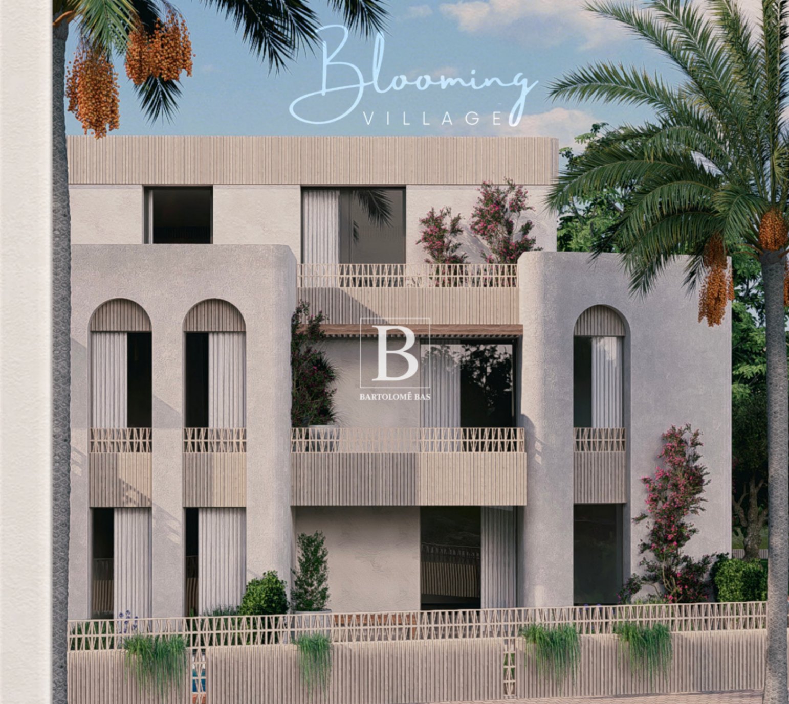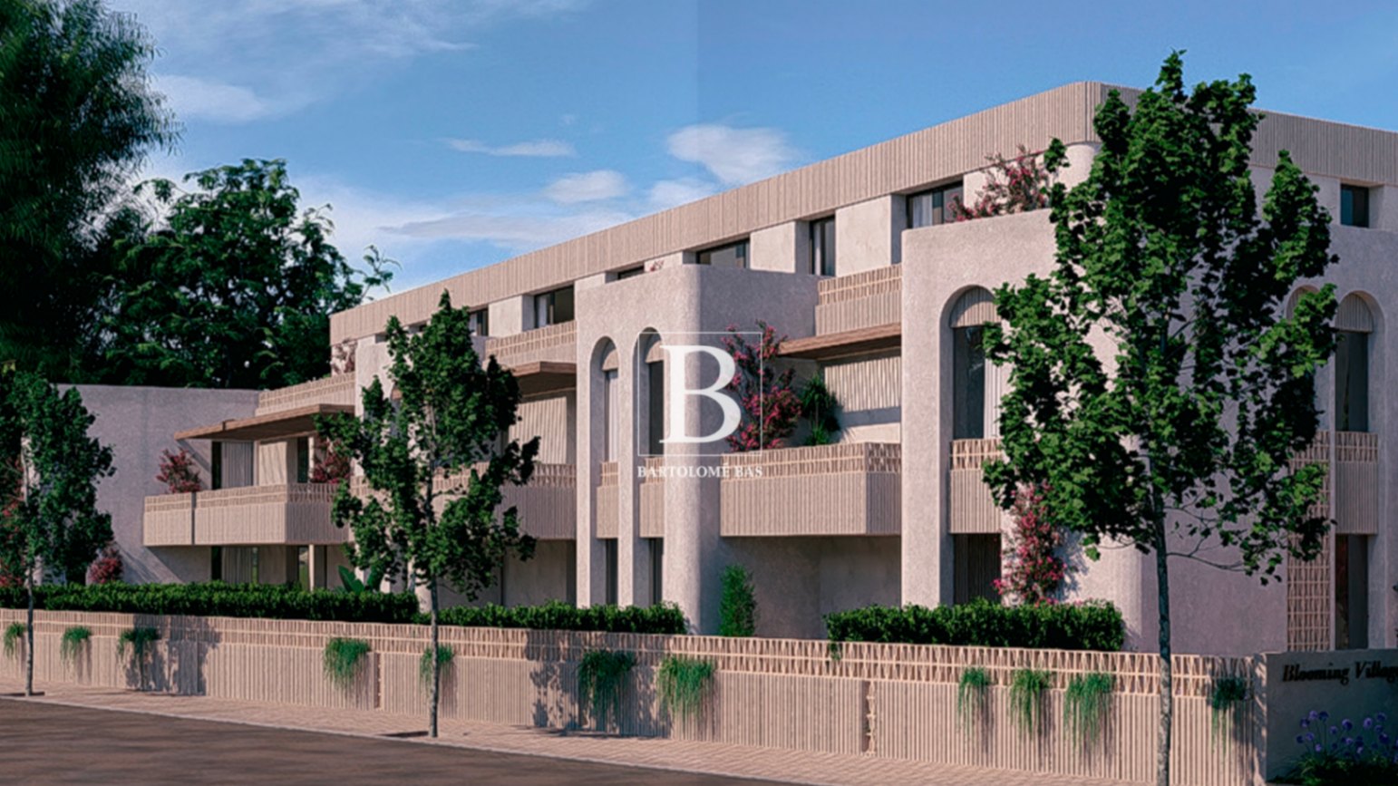 El residencial Blooming Village ofrece zonas comunes ajardinadas, piscina comunitaria con cloración salina, espacios para bicicletas y una plaza de aparcamiento subterránea incluida.