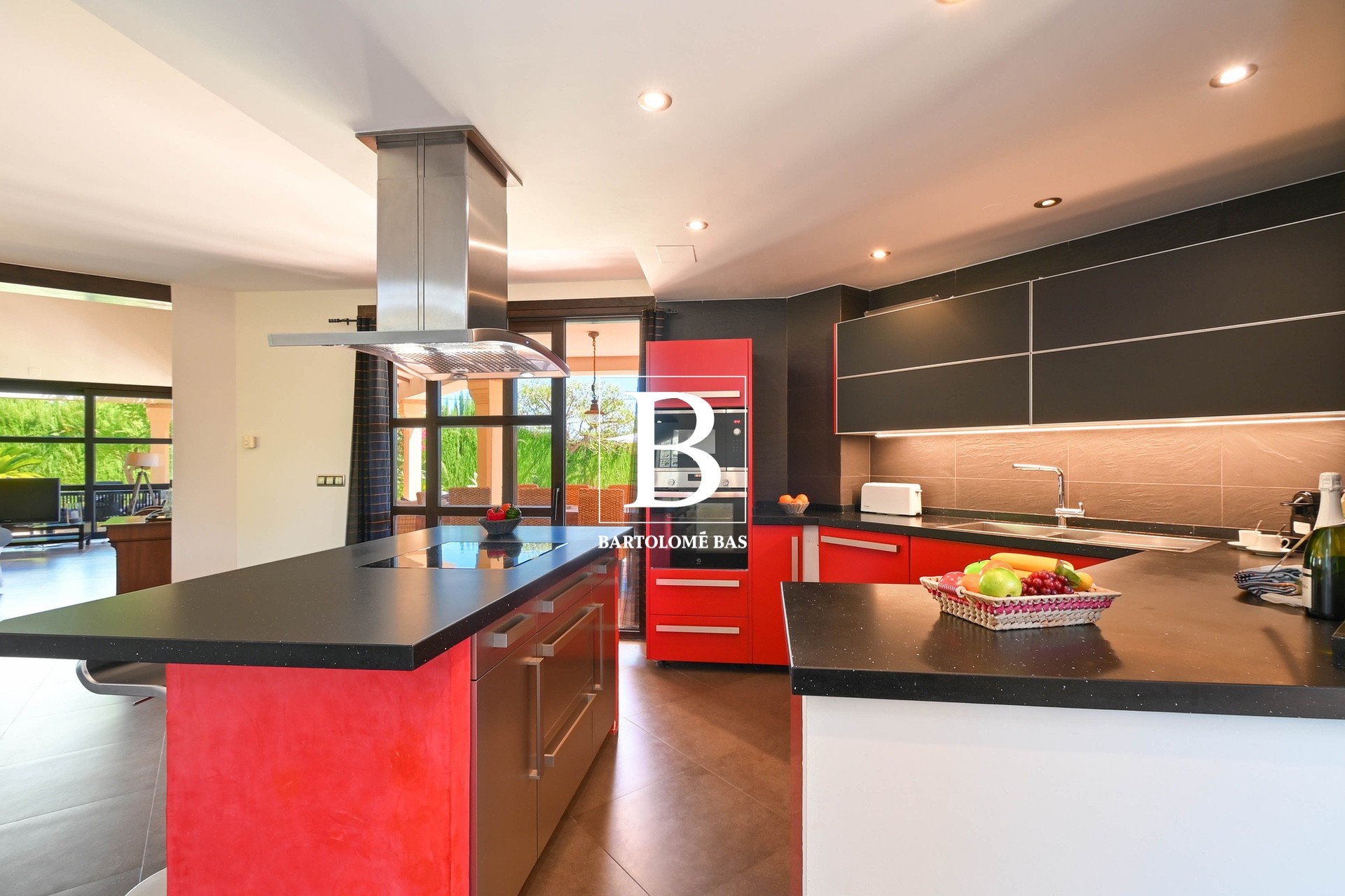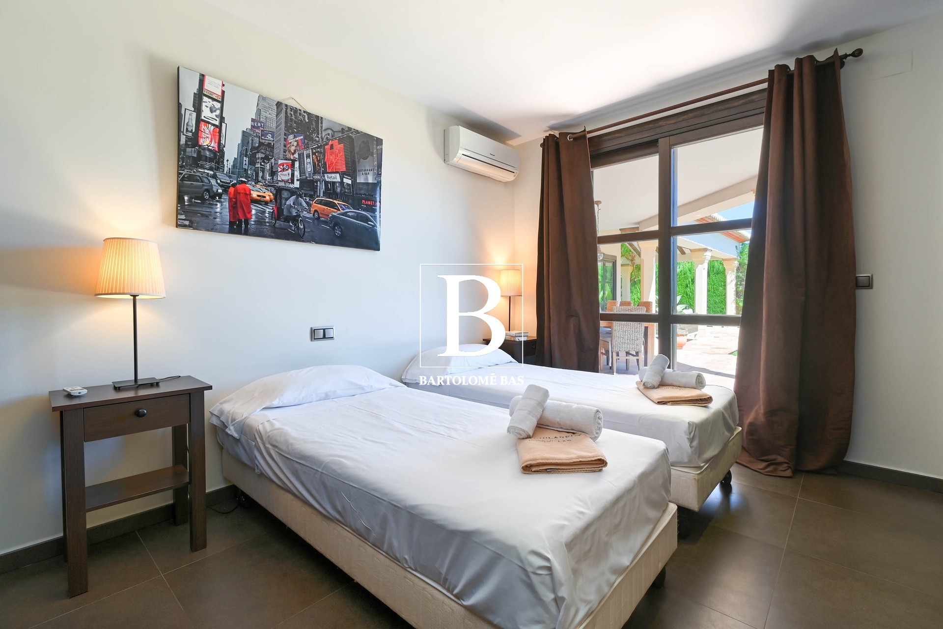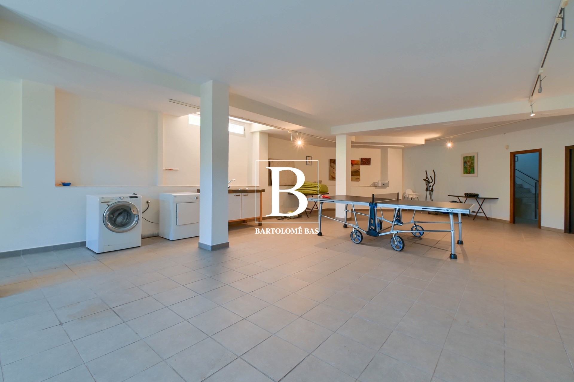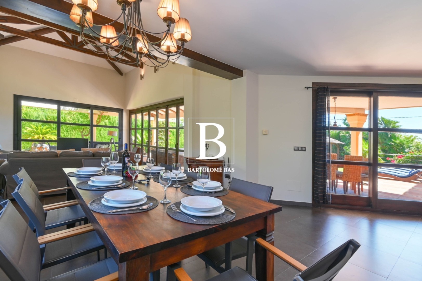La propiedad está distribuida en tres plantas, la villa consta en el nivel principal de una amplia terraza cubierta en forma de L con salón y comedor de verano, un espacio interior diáfano que consta de salón con chimenea, comedor y cocina americana. Tiene tres habitaciones dobles de tamaño muy generoso, así como dos cuartos de baños.