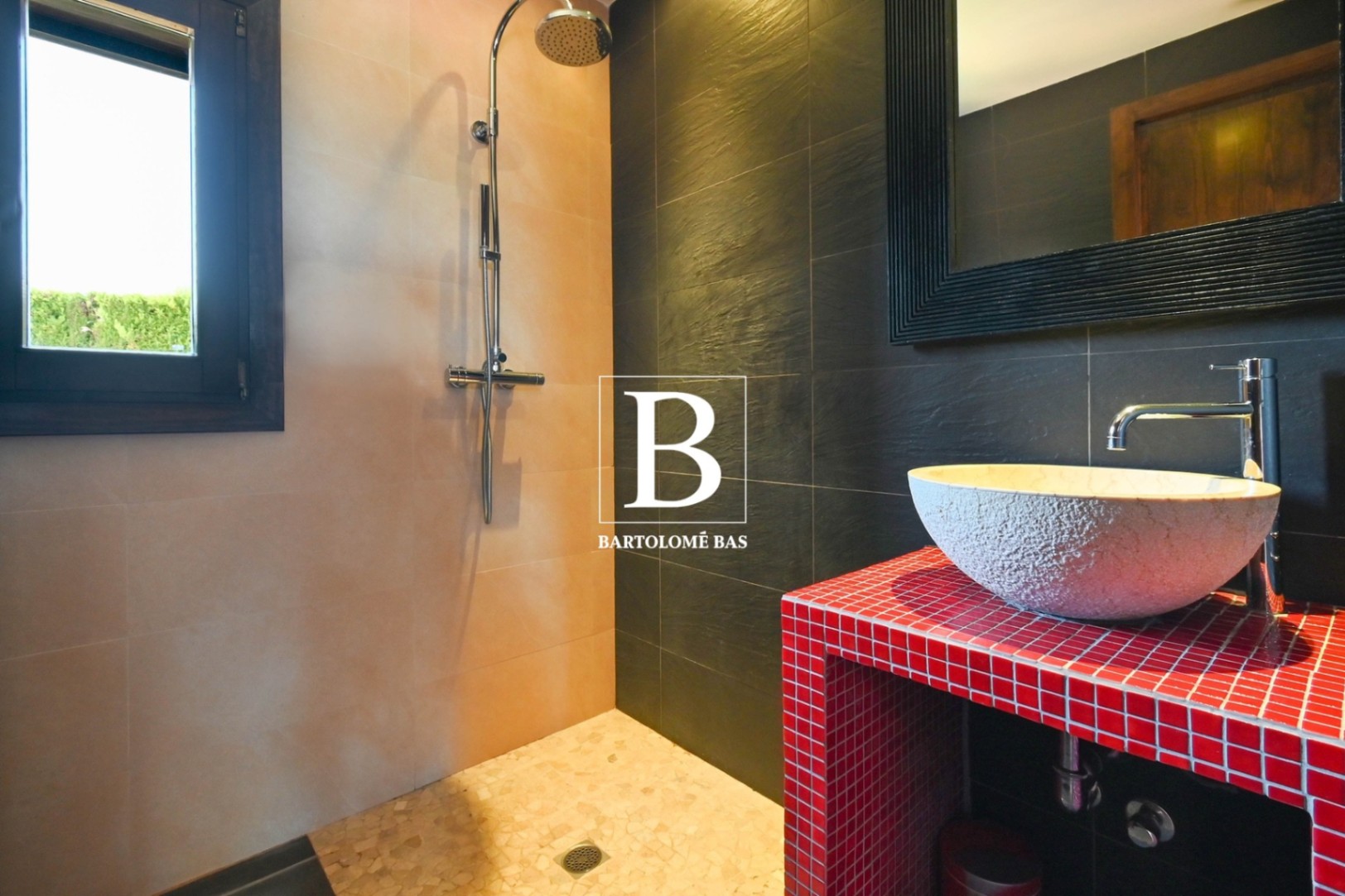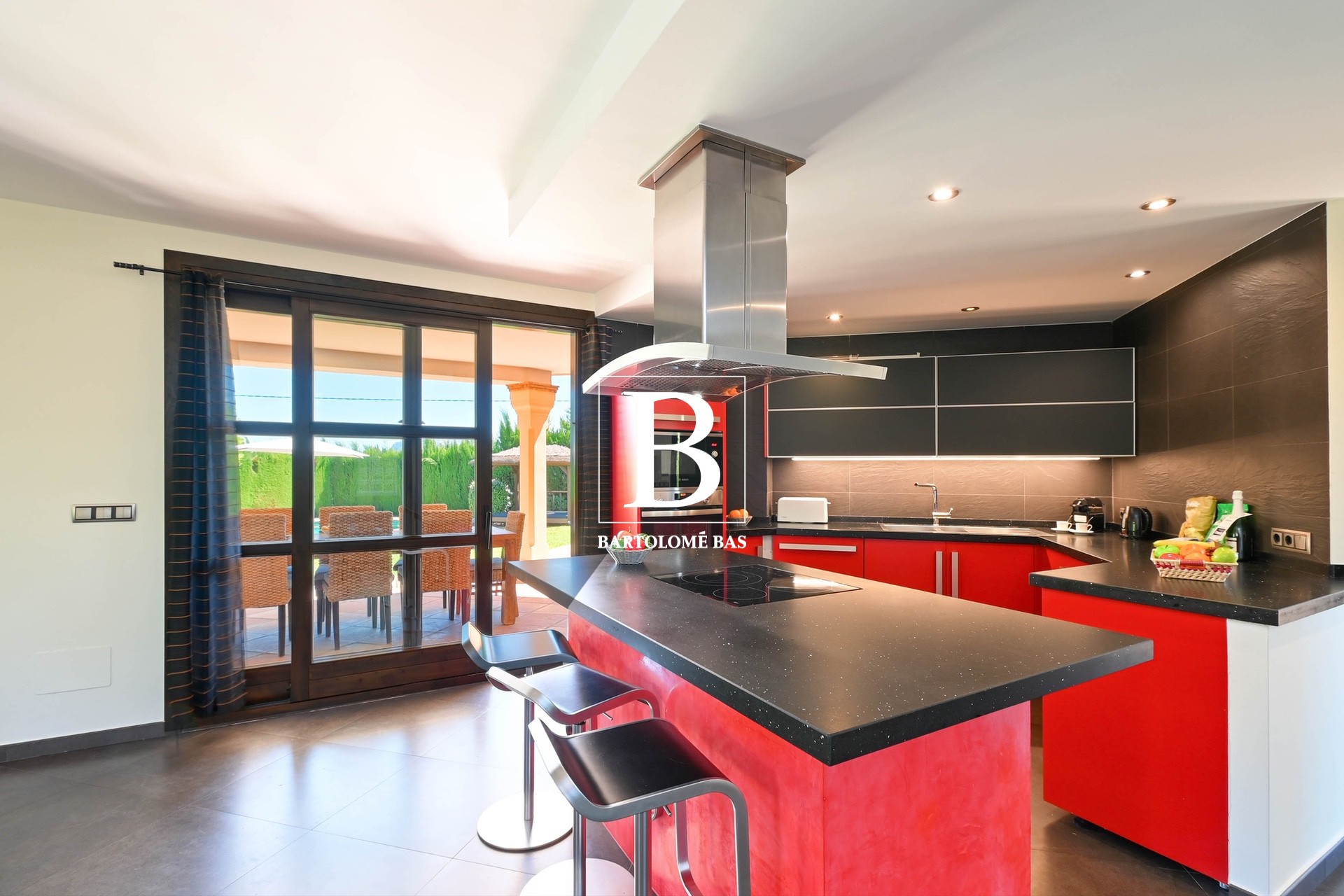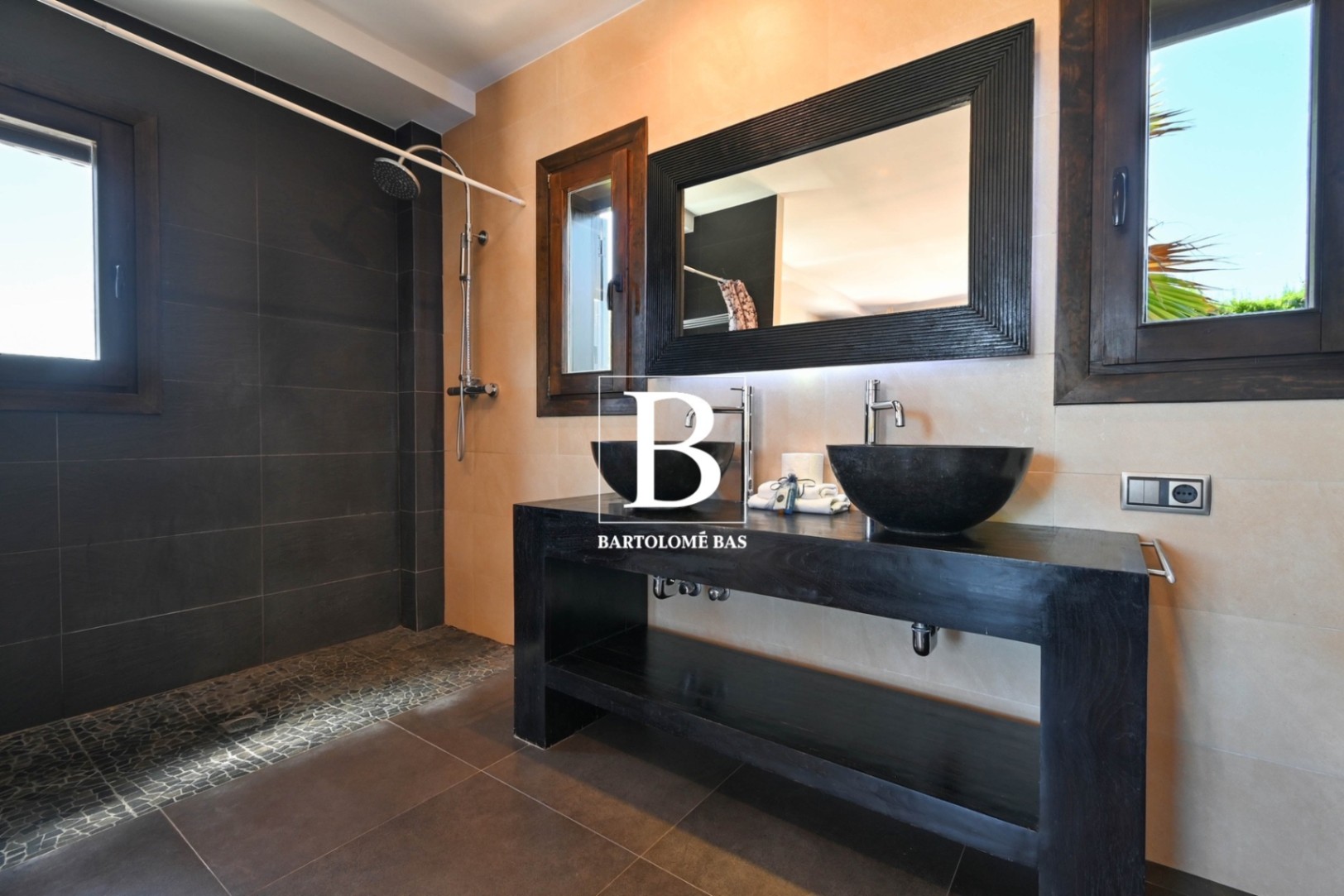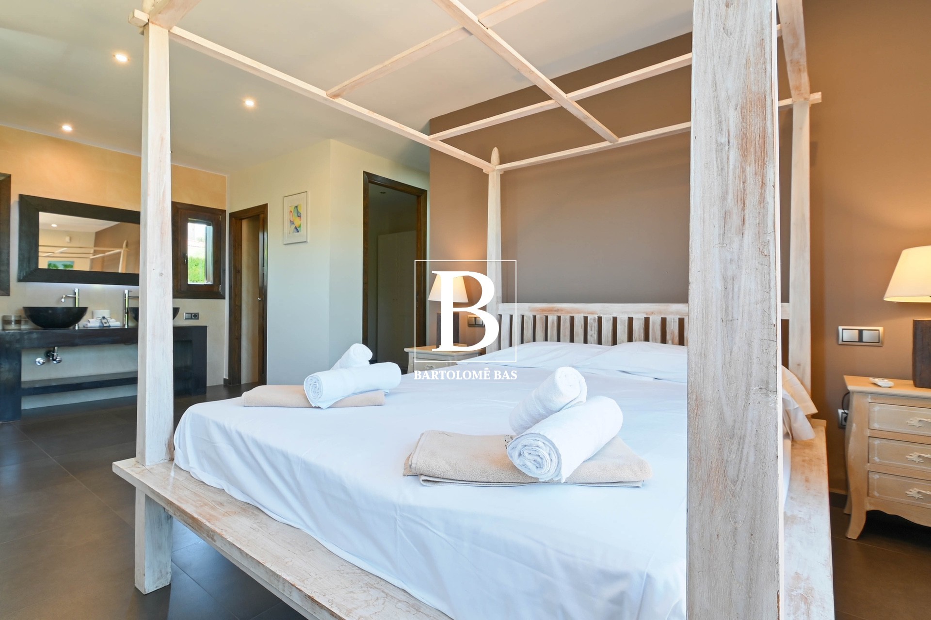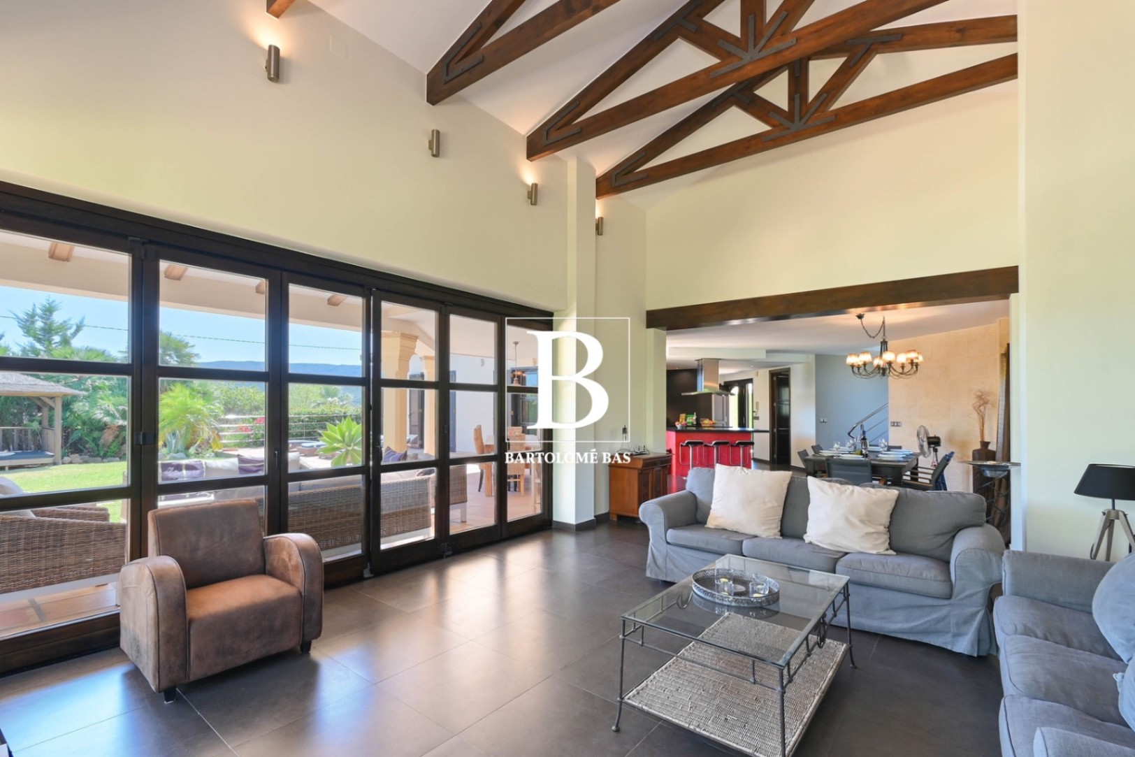 La propiedad está distribuida en tres plantas, la villa consta en el nivel principal de una amplia terraza cubierta en forma de L con salón y comedor de verano, un espacio interior diáfano que consta de salón con chimenea, comedor y cocina americana. Tiene tres habitaciones dobles de tamaño muy generoso, así como dos cuartos de baños.